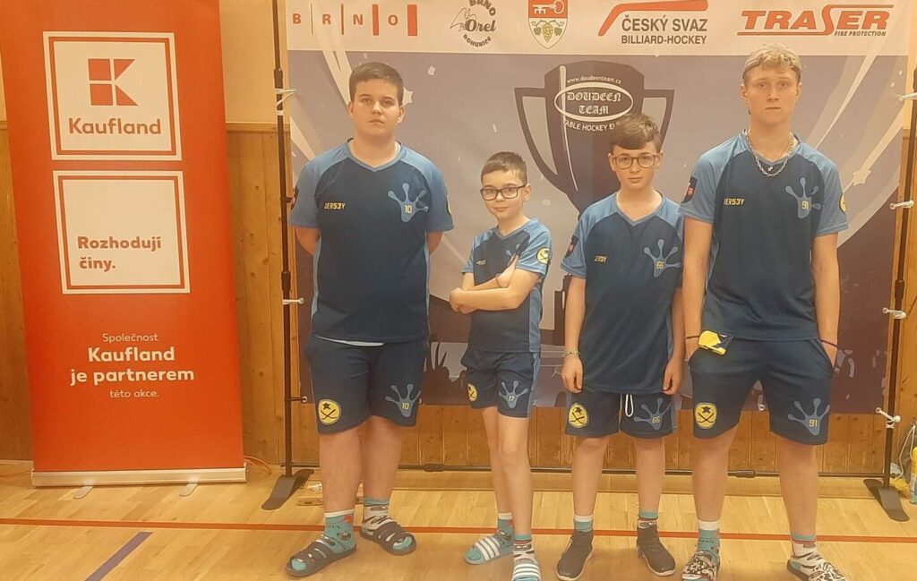 Kluci mezitím hráli srdnatě. Junioři vyhráli i proti Mostu a pak lacině remízovali s týmem Litvínova. Díky Lubovi, který zajistil remízu, se tak v základní části ocitli Kvaci na prvním místě. Čekalo se na souboj mezi Mostem a Mutěnicemi, který nám určil soupeře o 1. místo. Nakonec na nás „zbyly“ Mutěnice. A bohužel ve finálovém rozstřelu na 2 série byly úspěšnější. Takže KVACI (junioři) si z Litvínova vezou pohár a medaile za 2. místo.