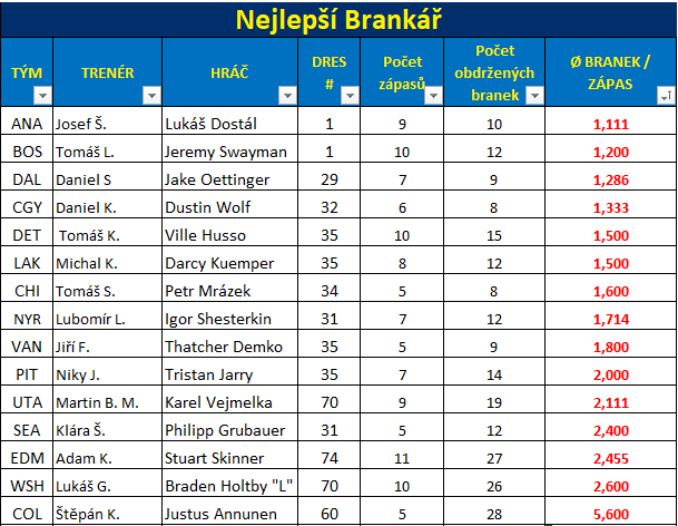 Dan po prvním zápase zase zmizí. Jeho „taktika“ je jasná. Využít nerozehranosti ostatních a obrat je o body. Dnes si vyšlápl na Sykyho. V první třetině se dostal do třech hráčů po vyloučení Harleye a Heiskanena, přesto to byli hráči Stars, kdo vstřelili úvodní branku utkání. Konkrétně Robertson. Syky se snažil, ale puky do branky nějak nechtěly zamířit. Ve druhé třetině se hrálo bez faulů, ale i bez branek. Třetí třetinu okořenil jen vyloučením Johnson (ANA), jinak se nestalo nic. Dan uhájil jednobrankový náskok a bere další 3 body do tabulky.