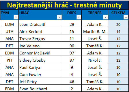 Behěm celého zápasu byli pouze dva hráči na trestné lavici, což je dost povzdbudivé. Lesík hrál úplně čistě, Adam 2x fauloval. Přesto skvělá statistika. Hra bez faulů je základ.