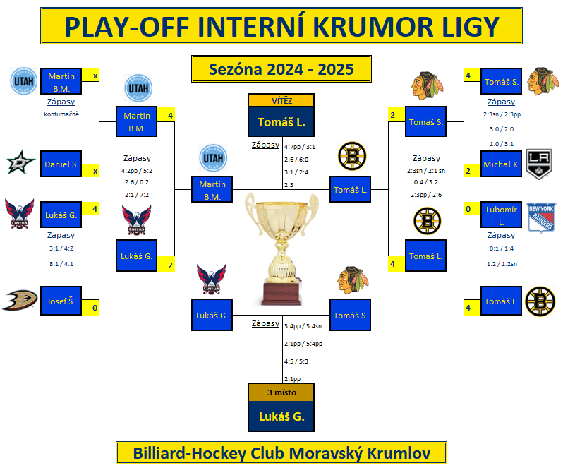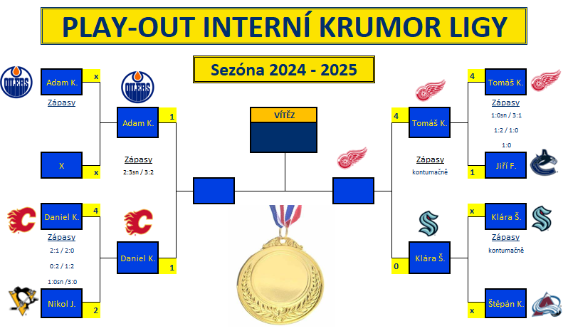 Protože se Syky z dnešního tréninku omluvil, zápasy o 3. místo se začnou odehrávat později. Co se neodložilo, bylo finále. Nevěřili jsme, že by jeden z finalistů vyhrál 4:0, čímž by dnes finále ukončil, tak se začalo.